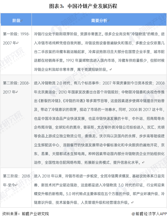 行业发展历程:已进入冷链物流3.0时代