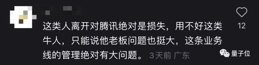 还有不少人认为,这样的人才被“毕业”对于腾讯而言是一种损失,他本该获得更广阔的的发挥空间。