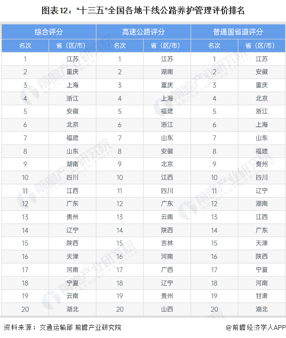 1、区域竞争:江苏省干线公路养护管理水平位居领先地位
