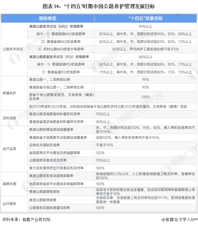1、“十四五”规划高速公路技术状况(MQI)优等路率达90%以上