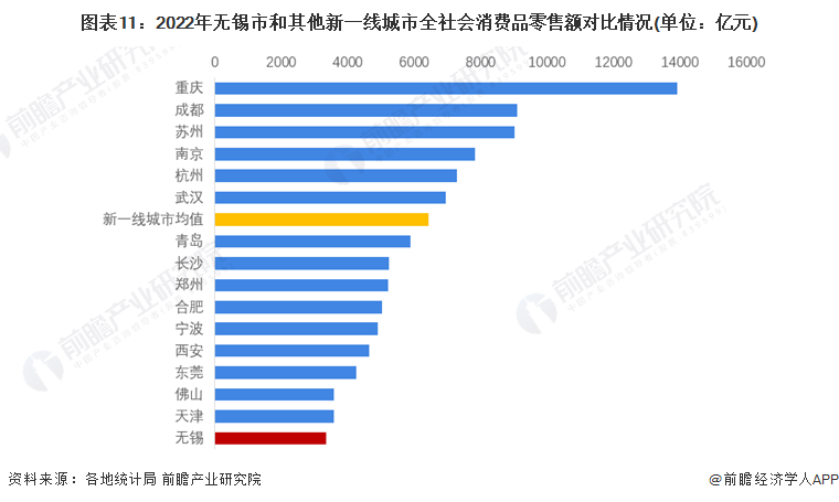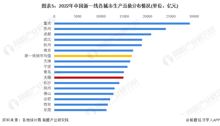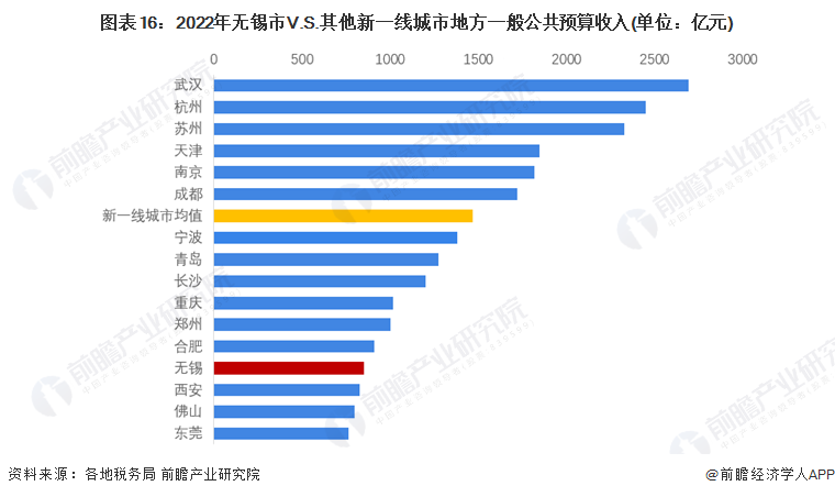 根据无锡市税务局公开的税收统计数据,2022年无锡市税收收入规模达到852亿元,在新一线城市中排名倒数第四,远低于新一线城市的平均水平。