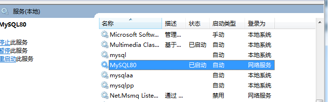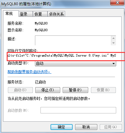 从而可以看出这个mysql80服务对应的ini配置文件,就是我们前面修改的my.ini配置文件。
