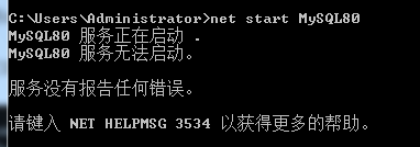 发现通过执行net start MySQL80命令无法启动MySQL服务。