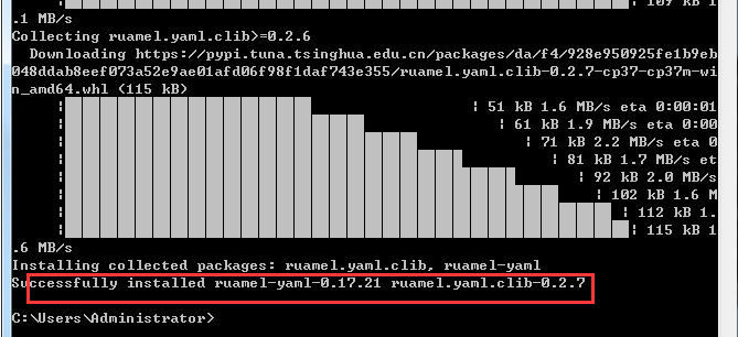 C:\Users\Administrator>pip install ruamel-yaml -i https://pypi.tuna.tsinghua.edu