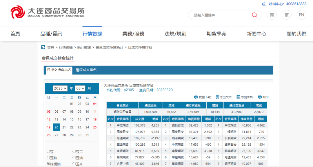 正如国内证券交易所会提供交易龙虎榜数据一样,国内各家期货交易所也会在每日收盘后提供满足上榜条件合约品种对应的至多前20的会员数据, 如下图: