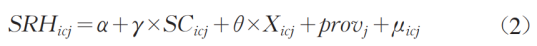 其中 SCicj代表j省份c区县个体i的社会资本,其他各变量定义与方程(1)相同。