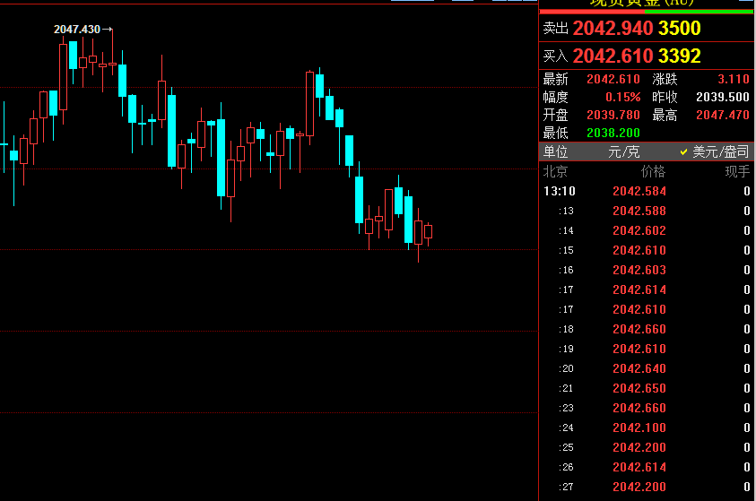 黄金走势上看,CPI数据公布之后黄金先抑后扬,站稳2000关口之后保持强势震荡上行,上个交易日从2015附近震荡上行,欧盘刷新高点触及2028附近之后维持震荡,美盘初请失业金以及PPI数据表现不佳,再度推动美指杀跌黄金一举刷新近期高点触及2048附近,随后回踩2033附近之后再度震荡走强,目前维持高位震荡,白盘偏强震荡之后看好周五晚间多头获利回吐走报复性的回踩调整,技术面上关注2050强压情况,下方关注2032短期顶底转换的支撑带跌破情况!