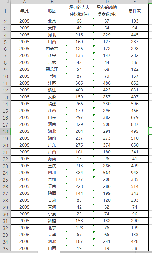 年度、地区、承办的人大建议数(件)、承办的政协提案数(件)、总件数