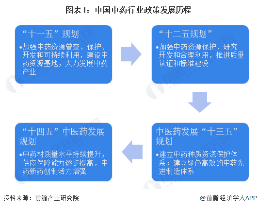 近年来,国家高度重视中医药行业的发展,《中医药发展战略规划纲要(2016-2030年)》和《中华人民共和国中医药法》等一系列战略政策的颁布为医药产业持续发展奠定良好的基础。除此之外,国家也在每个五年规划中提出中药行业的发展方向或重点。