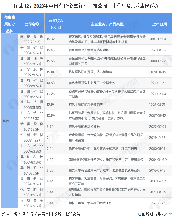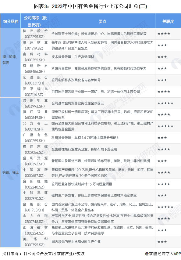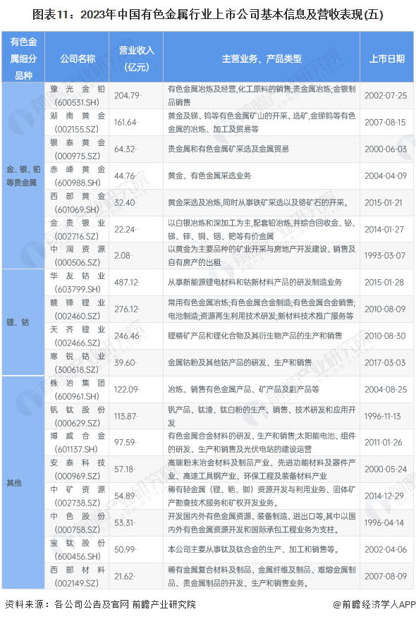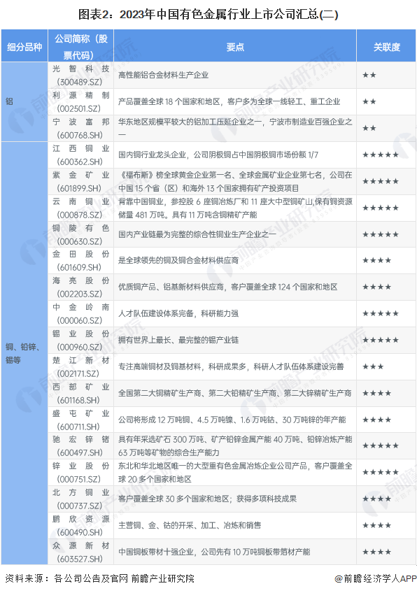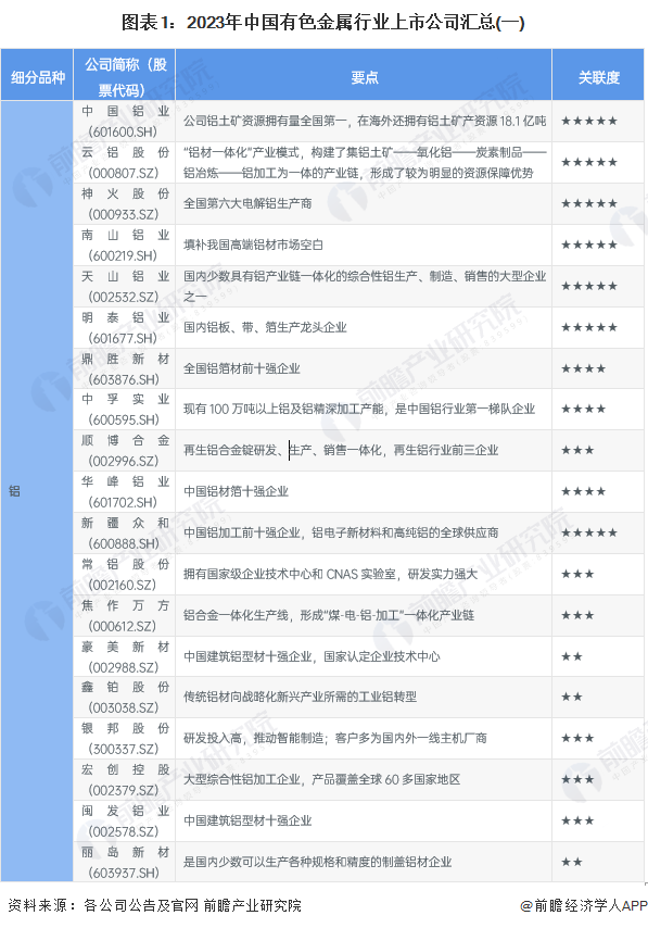 中国有色金属行业上市公司汇总