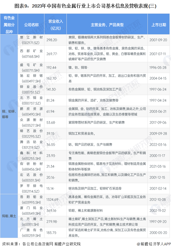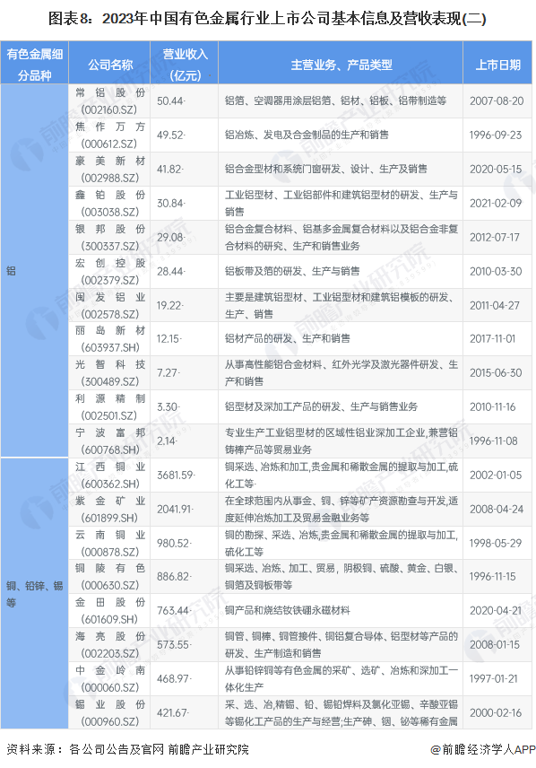 本文核心数据:2023年中国有色金属行业上市企业汇总名录;2023年中国有色金属行业上市公司基本信息及营收表现;中国铜行业代表上市公司业绩对比