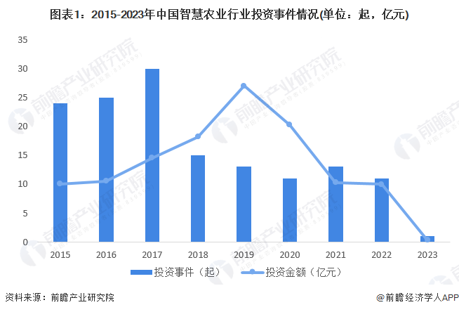 1、智慧农业行业投融资热度有所下降
