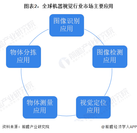 机器视觉可说是工业自动化系统的灵魂之窗,从物件/条码辨识、产品检测、外观尺寸量测到机械手臂/传动设备定位,都是机器视觉技术可以发挥的舞台,因此它的应用范围十分广泛,行业应用领域更是多到令人眼花缭乱。全球机器视觉行业主要应用领域有图像识别应用、图像检测应用、视觉定位应用、物体测量应用、物体分拣应用等,如视觉定位应用可用于汽车自动驾驶、物体分拣可用于食品分拣等活动。