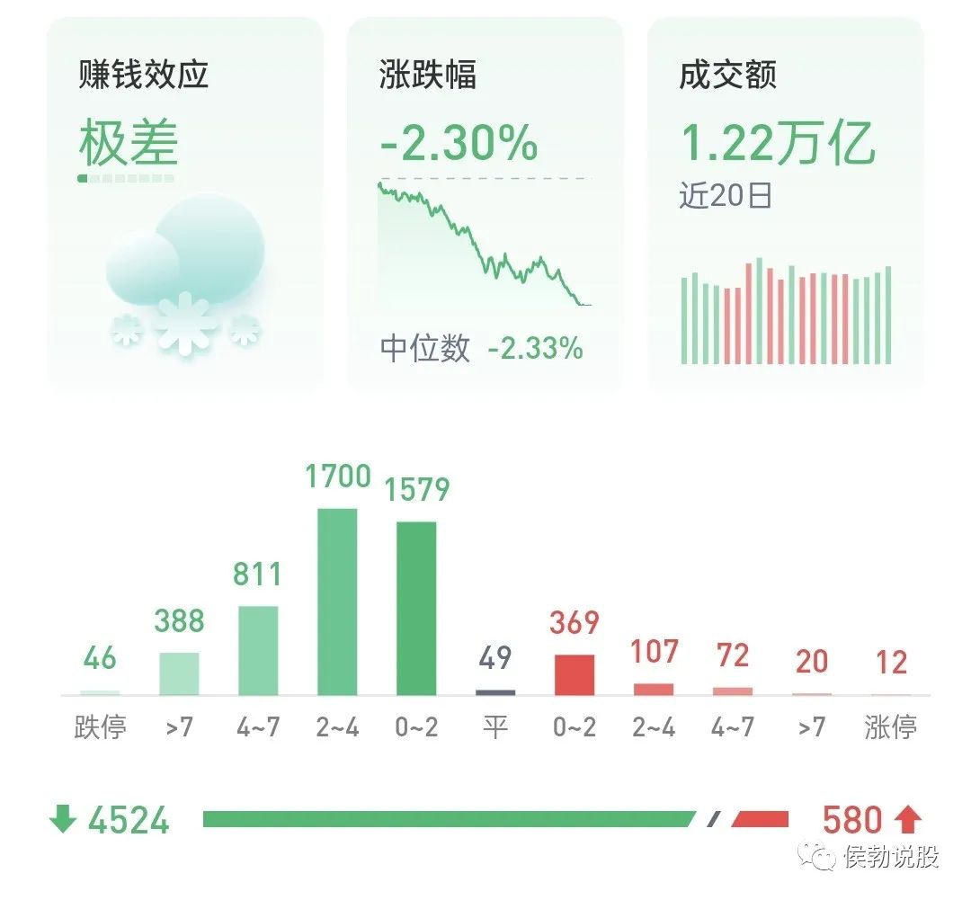今天资金本身就有兑现意愿,结合利空就容易出现这种共杀就是情绪和指数的共杀。那这个时候往往就容易杀出一个冰点。所以说大家要注意,今天数据上来看4,500多家下跌,百股以上的这种跌停,其实呢,就已经显示出这个市场是恐慌的。