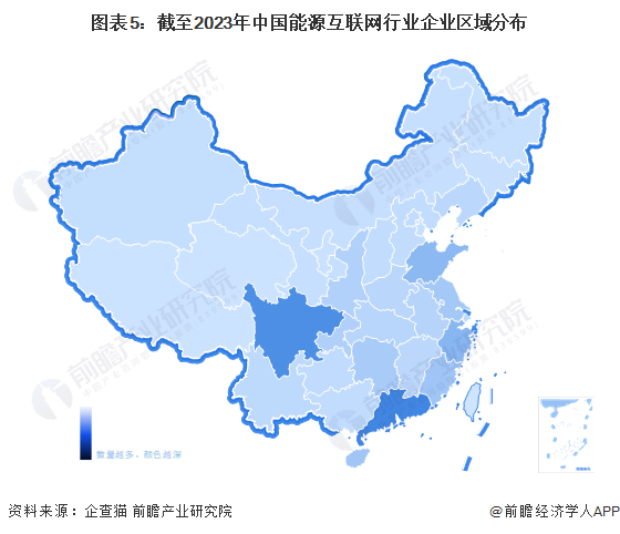 从我国能源互联网产业企业区域分布来看,能源互联网产业企业主要分布在广东和四川,其次是在浙江、山东、福建等地区;其余地方,如海南、江苏、湖南等省份也有较多企业分布。