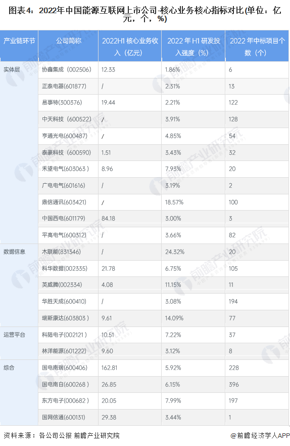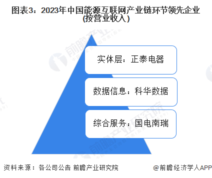 能源互联网行业产业链环节中,正泰电器是实体层中的领先企业;数据信息领域,营业收入最高的企业是科华数据;综合服务提供商营业收入最高的是国电南瑞。