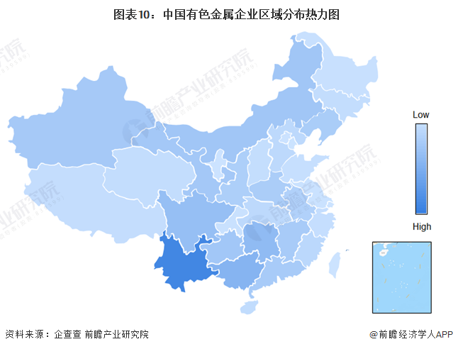 1、 区域竞争格局:云南地区有色金属企业数量最多
