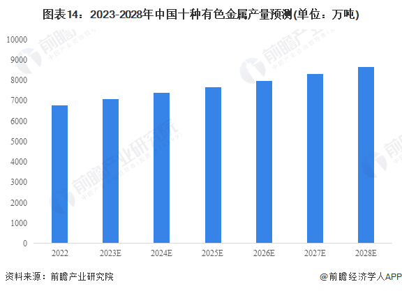 2、市场规模预测:2028年中国十种有色金属产量为8637万吨