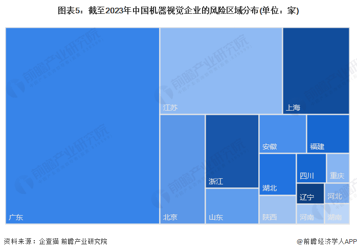 根据中国企业数据库企查猫,目前中国机器视觉有相关风险信息的企业主要分布在广东和江苏等地。截至目前,广东省共有819家企业拥有风险相关信息,而江苏省则有288家企业拥有风险相关信息。