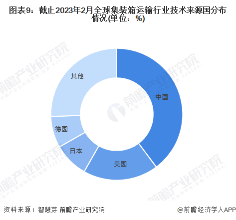 目前,全球集装箱运输第一大技术来源国为中国,中国集装箱运输专利申请量占全球集装箱运输专利总申请量的比重接近40%;其次是美国,其集装箱运输专利申请量占全球集装箱运输专利总申请量的比重超18%。