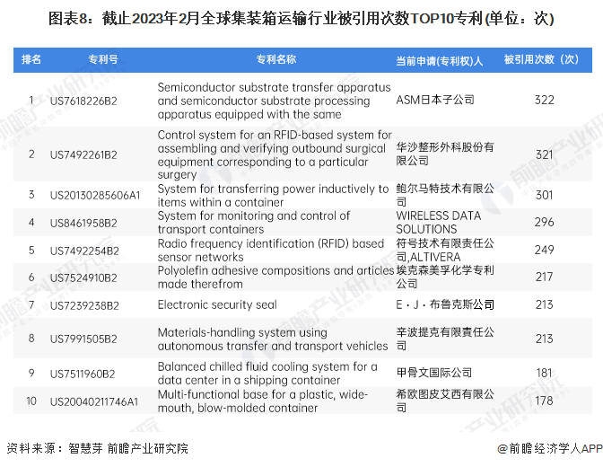 3、全球集装箱运输行业专利竞争情况