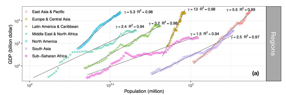 契子:2018年6月在瑞士苏黎世联邦理工学院访学时,我从一位参加苏黎世中国科学俱乐部活动的博士那里了解到密苏里科技大学的生物学家侯沉老师的工作,见科学网博文《蚁群是一个超级生物吗?》。侯老师主要研究昆虫社会的群体智能,而我主要研究人类社会的群体智能,在理解了侯老师的工作之后,我意识到昆虫社会的研究结果也许可以被应用到人类社会。在与侯老师交流之后,就有了我们与林黎、王汉杰两位老师今年在经济学期刊Structural Change and Economic Dynamics上发表的合作论文《Superlinear growth and the fossil fuel energy sustainability dilemma: Evidence from six continents》。接下来我对这篇论文做一个介绍。