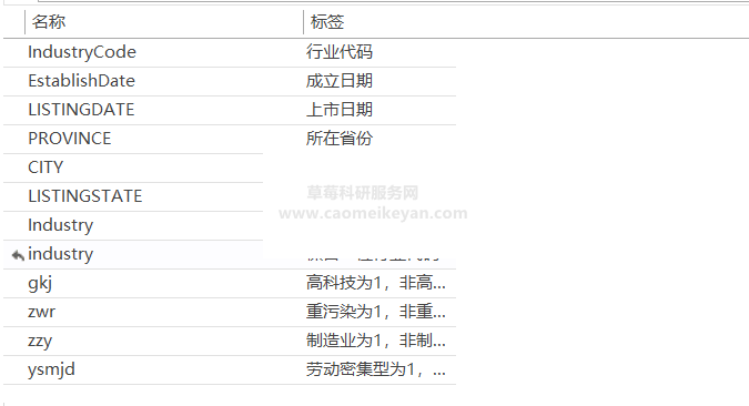 2.数据范围:根据2012年中国证监会行业划分是否高科技、是否重污染、是否制造业、是否劳动密集型、资本密集型、技术密集型,具体指标为:股票代码、年份、行业代码、成立日期、上市日期、所在省份、所在城市、上市状态、保留两位行业代码、保留—位行业代码、是否高科技、是否重污染、是否制造业、是否劳动密集型、资本密集型、技术密集型" }% @5 K6 |4 z+ Y. z' e1 Y