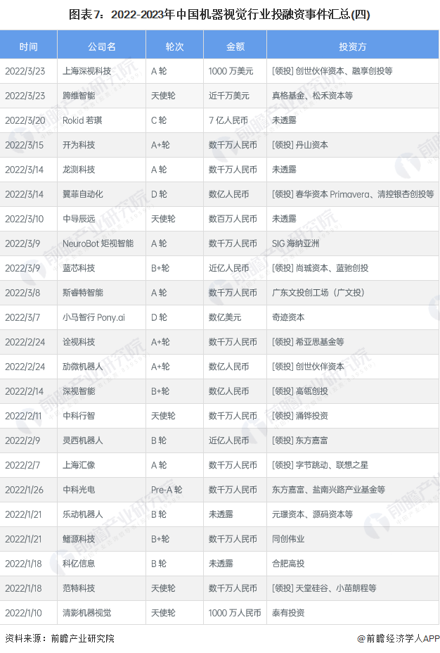 7、机器视觉行业投融资及兼并重组总结