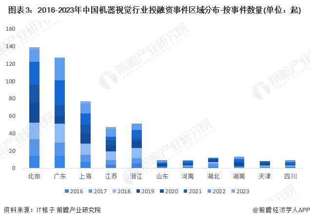 3、北京、广东地区机器视觉投融资事件最多
