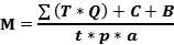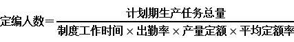 M是定员数;关于工作总量部分:T— 单位产品工时定额;Q— 产品产量;C— 计划期允许的废品工时上限;B— 零星任务工时;关于单位效率部分:t— 制度工时(指一个工人的年制度工作小时);p—工时利用率;a— 工时定额完成率
