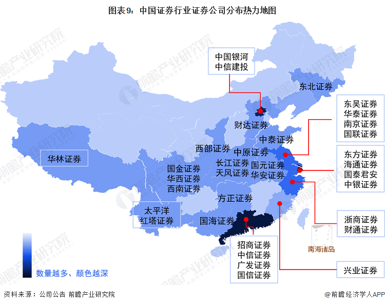 ——区域竞争:证券公司主要集中在北京、广东和上海地区