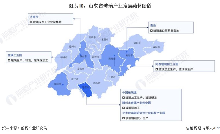 山东省玻璃产业集聚效应凸显。目前,山东省玻璃产业已形成以枣庄滕州、潍坊临朐为代表的工艺玻璃加工集散地,以青岛为代表的玻璃出口贸易集散地,以济南地区为代表的玻璃深加工企业聚集地,在国内玻璃市场具有重要的影响力。