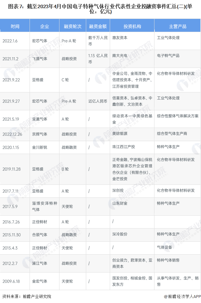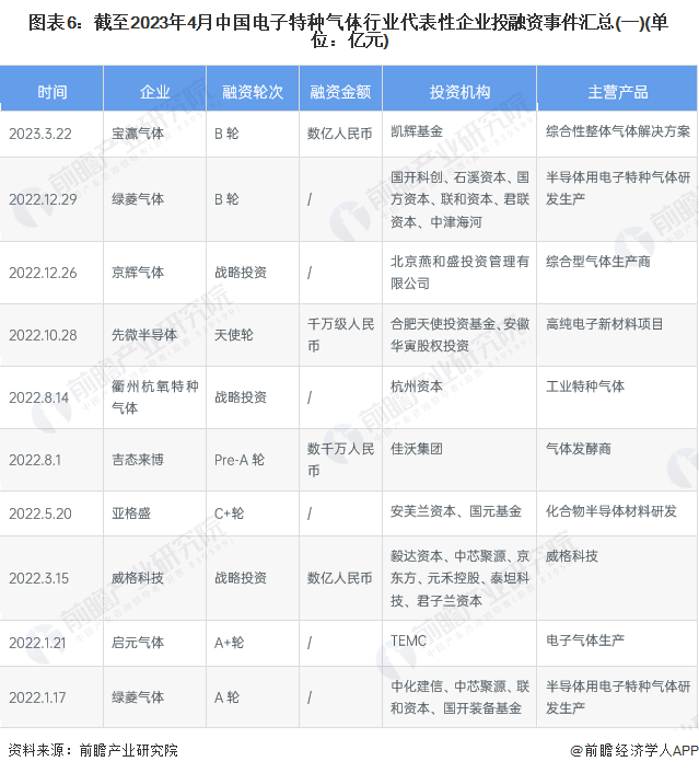 从中国电子特种气体行业投融资事件汇总中可以看出,不少企业近年来持续发生融资事件,这些企业随着自身的规模扩大逐步发起A轮、B轮融资,反映该行业正在处于发展成长期。