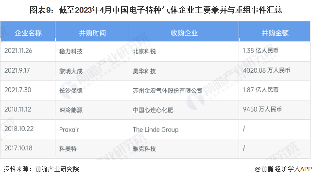 4、电子特种气体企业兼并重组情况