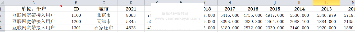 2.计算说明:数据在原有的年鉴基础上按照 中国互联网 : 宽带接入用户数 : 地级市 | CEIC (ceicdata.com) 进行填充,使其2020和2021年数据可用% Q( A+ ~8 B! J. g+ z: S