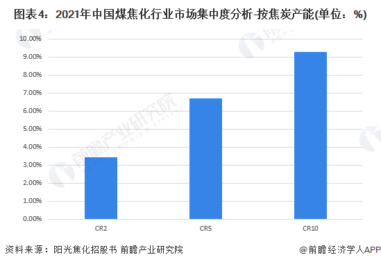 作为传统工业领域,煤焦化行业技术壁垒不高,全国各地有众多零散炼焦产能,行业属于完全竞争市场。由于原料供应充足,技术门槛较低,我国涌现了大量小规模、小产能的炼焦企业,产业集中度不高,产能过剩,以2021年焦炭产能为例,CR2仅为3.42%,CR10不足10%。