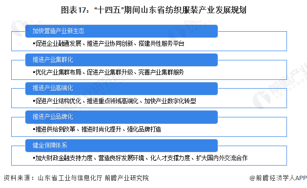 “十四五”期间,山东省将通过实施“五大重点任务”助力发展纺织服装产业: