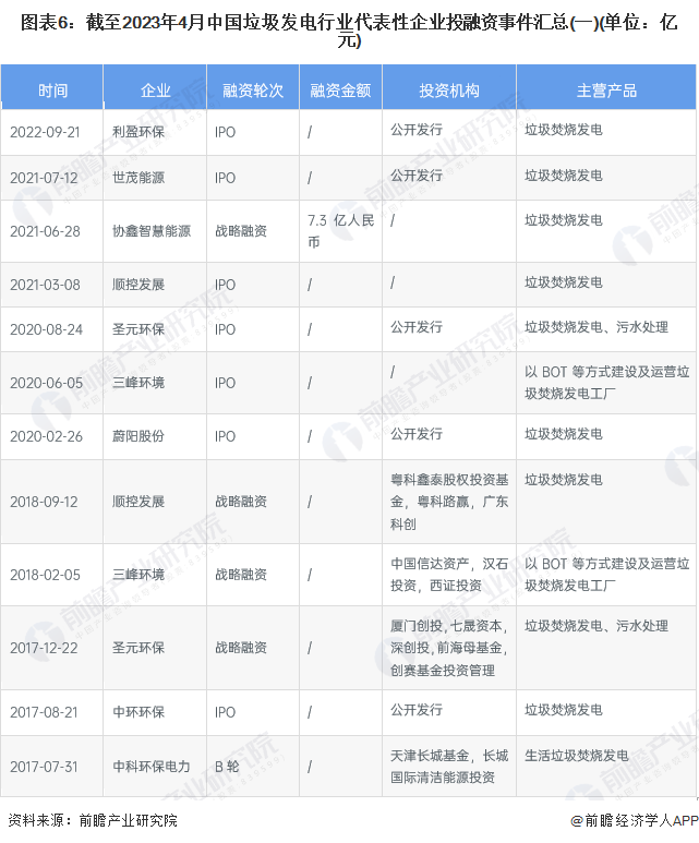 从中国垃圾发电行业投融资事件汇总中可以看出,早年间垃圾发电行业的融资事件类型主要集中在战略融资及A轮融资中,而近两年这些企业发展到一定规模,便开始通过IPO形式获得融资。