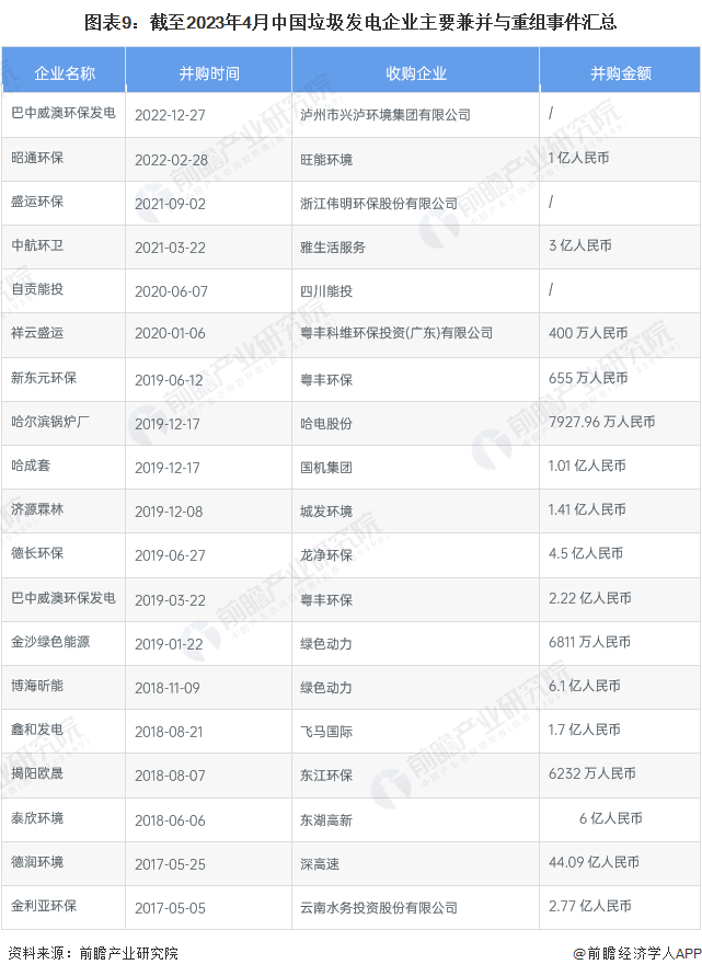 中国垃圾发电行业兼并重组主要是大型上市企业对中型垃圾发电生产企业进行并购。如旺能环境并购昭通环保、四川能投并购自贡能投等。