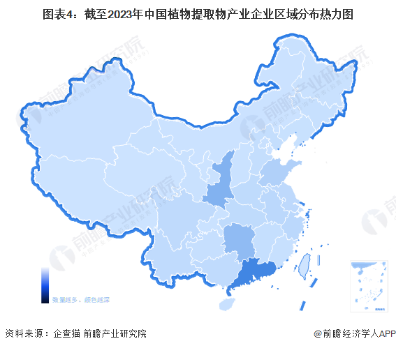 截至2023年4月,我国植物提取物注册企业主要分布于广东、陕西和湖南。其中,广东为我国植物提取物行业企业分布最多的地区。