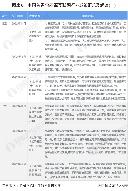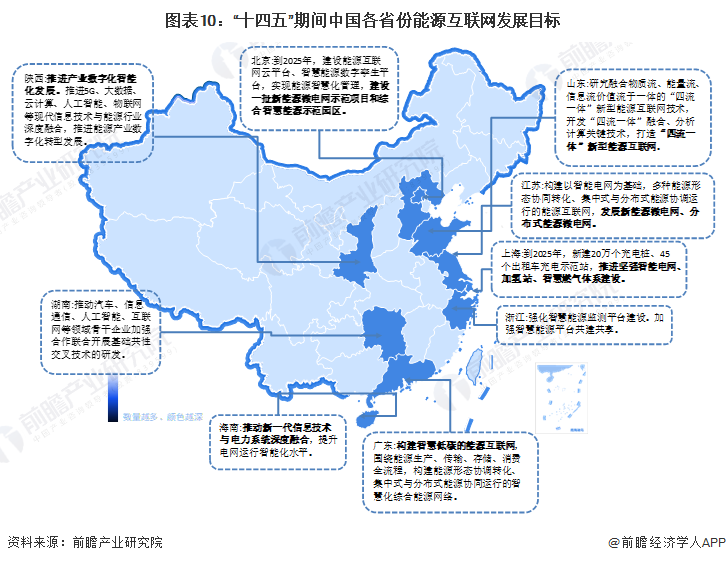 “十四五”期间,我国主要省份也提出了能源互联网行业的发展目标,北京明确到2025年建设能源互联网云平台,上海要求到2025年新建20万个充电桩,加强智能电网的推进工作,其他省市也在能源互联网平台建设、分布式能源协同等方面做出规划: