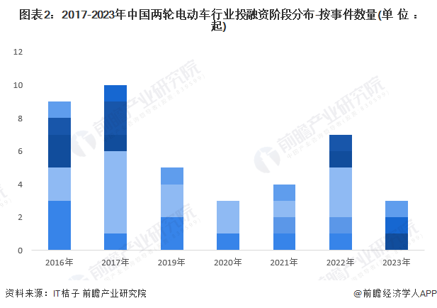 2、两轮电动车行业投融资事件处于A轮阶段较多