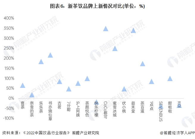 注:上图为主要新茶饮品牌2021年上新产品数量同比增长数据。
