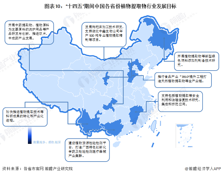 依据各省市“十四五”规划,在植物提取物产业提出了对应的发展目标及规划。