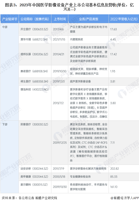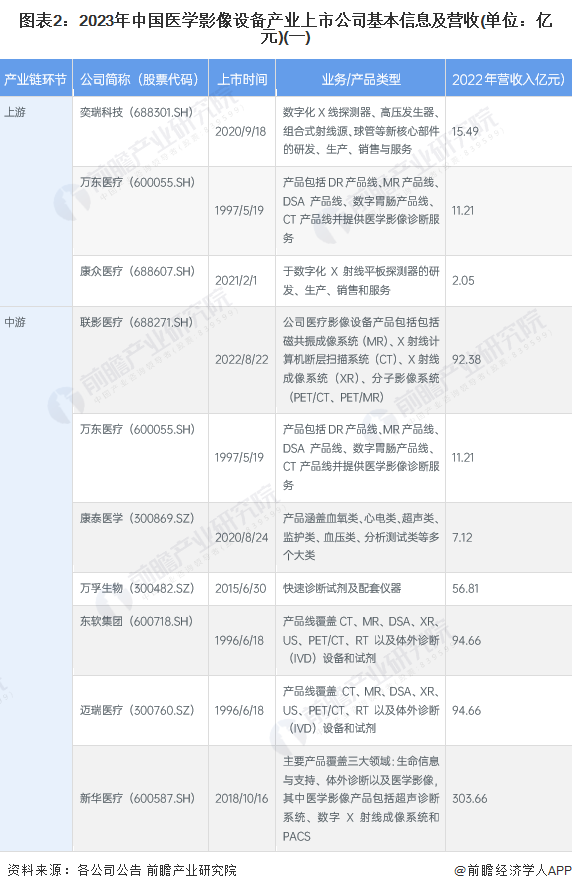 行业主要上市公司:联影医疗(688271.SH);万东医疗(600055.SH);康泰医学(300869.SZ);万孚生物(300482.SZ);迈瑞医疗(300760.SZ);开立医疗(300633.SZ)等
