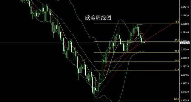 上周欧美市场周初开盘在1.07157的位置后行情先回落,周线最低给到了1.06340的位置后行情强势拉升,周线最高触及到了1.07789的位置后行情冲高回落,周线最终收线在了1.07070的位置后行情以一根上下影线基本等长的长脚十字星形态收线,而这样的形态收尾后,本周区间操作,点位上,前期0.99400的多止损跟进在1.06000,今日的行情1.07500空止损1.07750下方目标看1.06900,跌破看1.06750和1.06500,