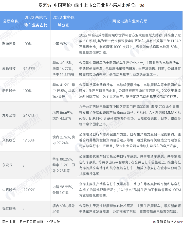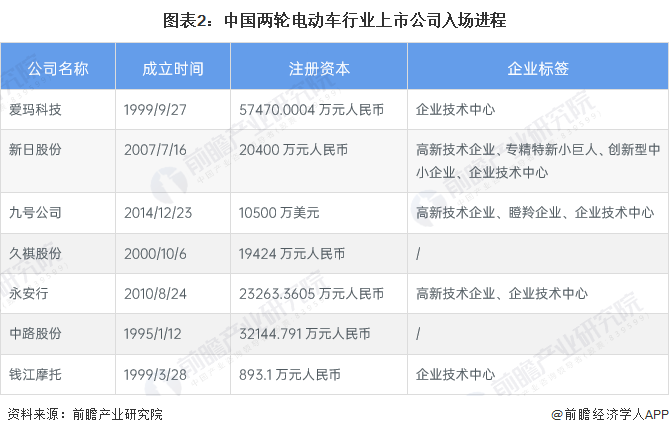 两轮电动车行业上市企业竞争格局
