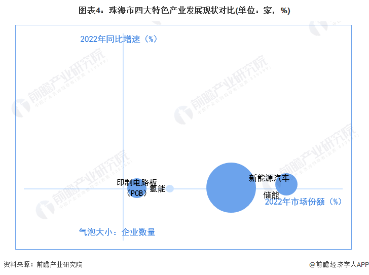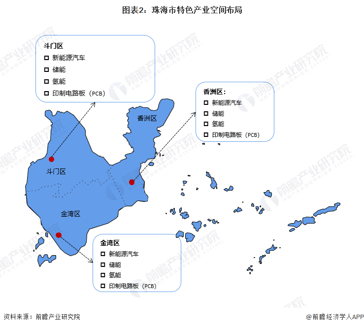 目前,新能源汽车产业、储能产业、氢能产业以及印制电路板(PCB)产业分布较平均,在珠海市三大行政区均有布局。