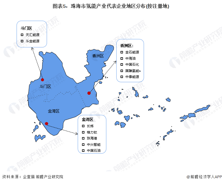 根据企查猫查询的珠海市氢能产业代表企业有格力钛、中兴智能、金石能源、中石化、中石油、中海油等,具体的地区分布如下: