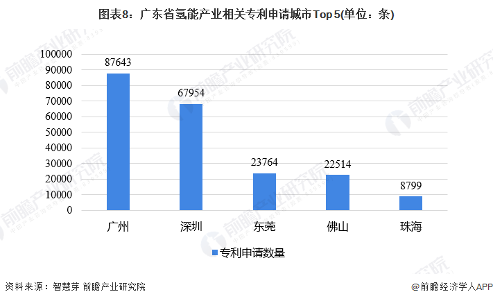 根据智慧芽所查询的广东省涉及氢能的261150条专利中,广东省内专利申请数量排名前五的城市分别是广州(87643条)、深圳(67954条)、东莞(23764条)、佛山(22514条)和珠海(8799条)。珠海排名全省第五,可见其创新能力在广东省内也具有一定的发展空间,但要追上第四名的佛山还需付出较大努力。